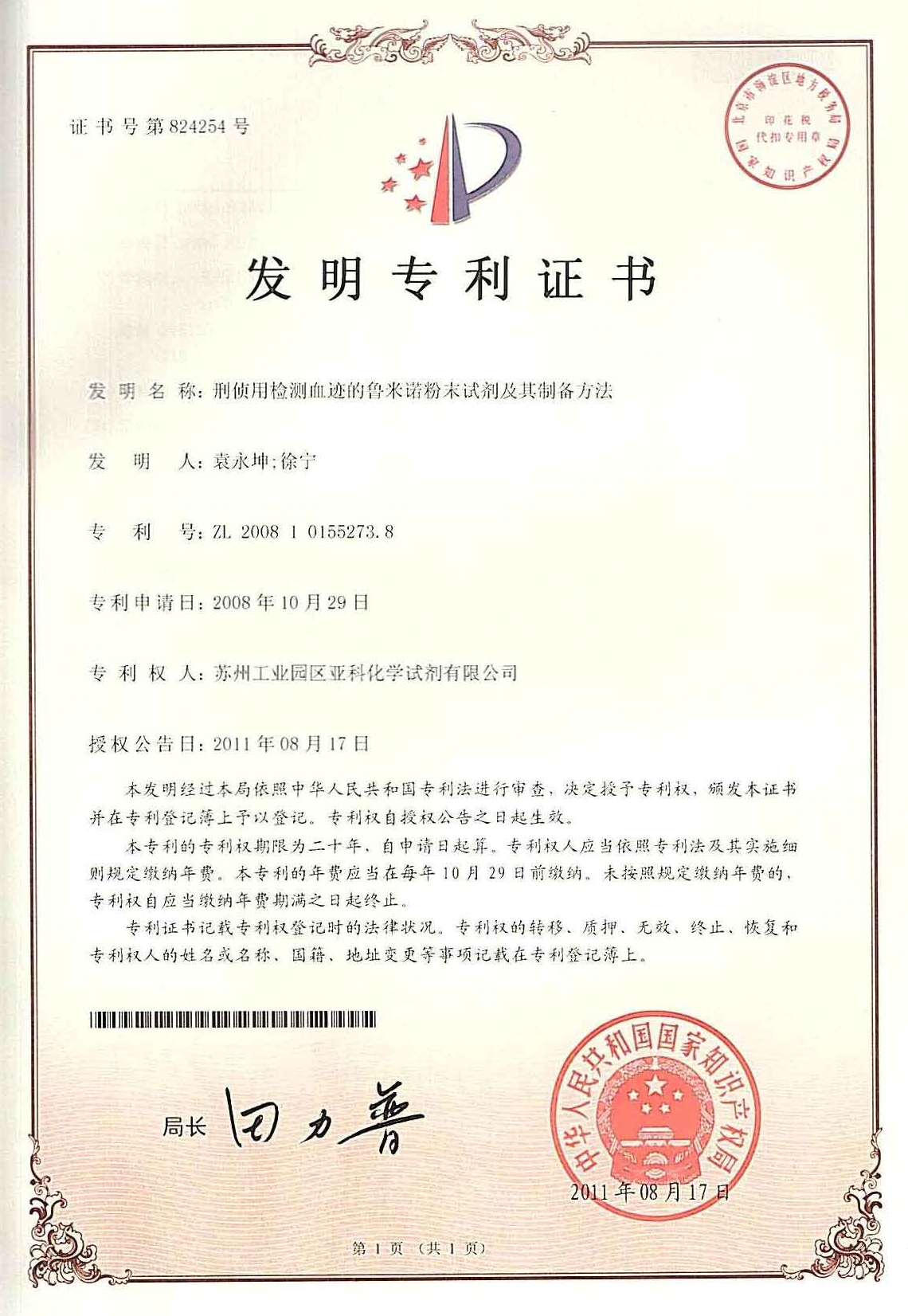 发明专利:刑侦用检测血迹的鲁米诺粉末试剂及其制备方法 | 发明专利: |