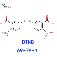 DTNB5,5'-二硫代双(2-硝基苯甲酸)的简称,其CAS号为69-78-3,广泛用于生化研究。作为反应色原,DTNB除用于测定蛋白质、多肽组织中巯基外还用于尿酸、胆固醇比色测定,氯二甲基砷的测定,有机磷农药中毒的监测(胆碱酯酶测定)等,是诊断试剂研究、生产,测定蛋白质、多肽和组织中巯基的灵敏测定试剂。