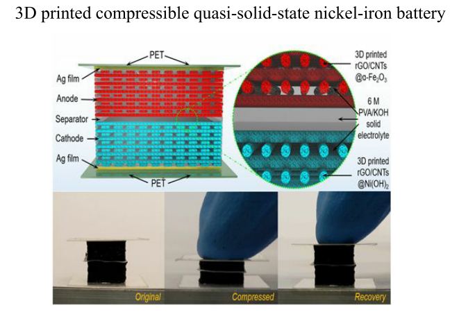 3D打印技术助力电池制造工艺创新,制备可压缩准固态镍铁电池