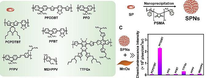 近日,湖南大学宋国胜教授开发了一种新型的化学发光体系:锰-噻吩体系,并基于该体系一种pH响应化学发光和化学动力学系统(MnOx-SPN),实现了实体瘤的可激活化学动力学疗法。