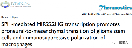 这是一篇近期发表在Theranostics(IF: 12.4)的文章,该文章主要展示了如何通过转录组测序+湿实验相结合的方式,探究首次揭示了宿主基因MIR222HG促进胶质母细胞瘤(GBM)放疗耐受及免疫微环境抑制的新机制。