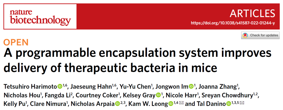 近日,美国哥伦比亚大学的研究人员在 Nature Biotechnology 期刊发表了题为:A programmable encapsulation system improves delivery of therapeutic bacteria in mice 的研究论文。