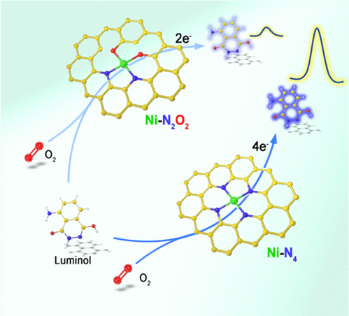 图1. Ni SACs活性中心不同配位结构对氧气活化路径的选择性及ECL性能影响。图片来源:Anal. Chem.