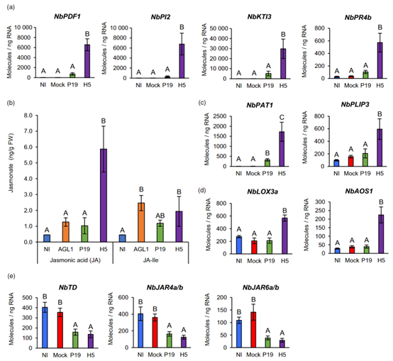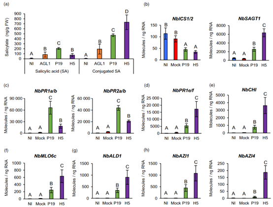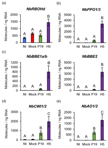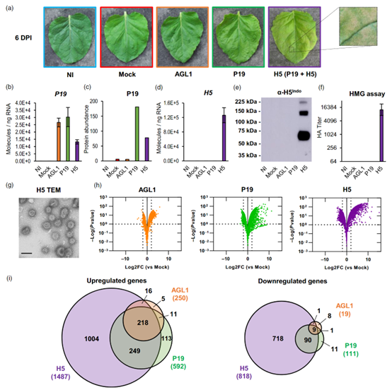 下面,作者通过RNA-seq的分析和实验的手段分别证明了在共表达P19和H5后,植物细胞会出现: