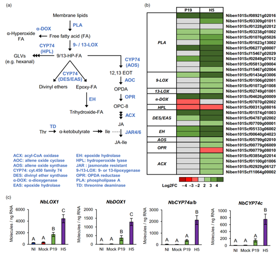 图8:茉莉酸积累和氧脂素相关基因的表达。
