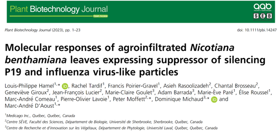近日,来自加拿大的Marc-Andre D’Aoust、Dominique Michaud和Peter Moffett教授在《Plant Biotechnology Journal》上发表题为“Molecular responses of agroinfiltrated Nicotiana benthamiana leaves expressing suppressor of silencing P19 and influenza virus-like particles”的文章,作者全面描述了瞬时表达VSR P19或共表达P19和HA的烟草细胞中发生的分子变化,结果发现确定了对农杆菌介导的外源蛋白表达的一般反应,包括叶绿体基因的下调表达、氧化胁迫响应的基因的上调表达以及木质化反应强化导致植物细胞壁增厚等反应。