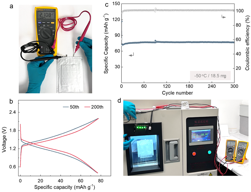 图2. -50 ℃软包电池性能。图片来源:J. Am. Chem. Soc.
