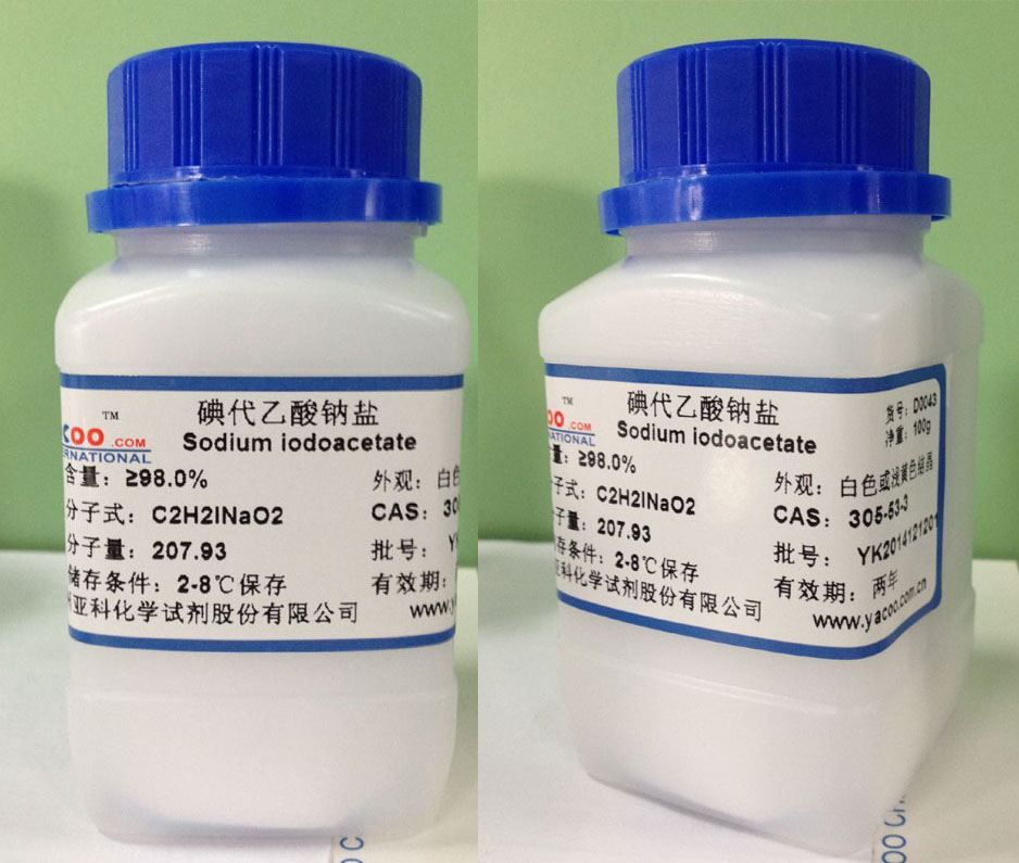 碘代乙酸钠盐别名为碘乙酸钠,英文名称为Iodoacetic acid sodium salt,属于医药中间体,用于制药工业。该产品制作工艺比较讲究,且产品易吸潮,需低温保存。