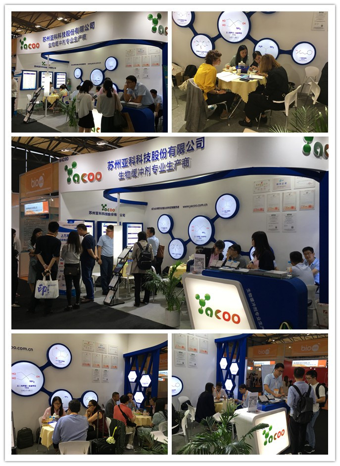 “第十九届世界制药原料中国展”(CPhI China)在昨日上海新国际博览中心完美落下帷幕,展会三天现场大牌云集,吸引了数万观众前往参展。本次展会,亚科展位全新升级,凭借雄厚的科技实力和高品质的产品成为同行业中一大亮点,苏州亚科作为生物缓冲剂专业生产商,本次重点为参展客户展示了TRIS、HEPES、MOPS以及CAPS等多款生物缓冲剂类优势产品。亚科科技的生物缓冲剂类产品因其稳定的产品品质和持续稳定的供货能力,吸引了众多中外客商驻足观看,咨询洽谈,场面十分火爆。