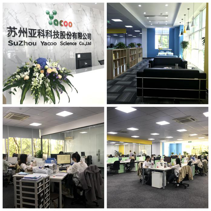 苏州亚科科技股份有限公司成立于2003年,公司经过多年的创新发展,现已形成以“体外诊断试剂原料”、“电化新材料”、“生物缓冲剂”、“医药中间体”等为主导的,集研发、生产、销售和服务于一体的国家级高新技术企业。苏州亚科科技坚持自主品牌运营,旗下拥有著名品牌Yacoo,并拥有独立的研发试验中心和占地100,000平方米的生产基地,已通过ISO9001:2015质量体系认证。可为广大客户提供优质的从克级到吨级的科研产品的委托定制业务以及批量化的生产服务。