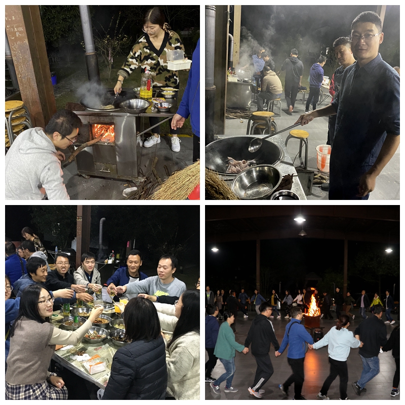 30日下午16点全体员工在公司大门口集合,统一乘大巴车前往目的地——苏州穹窿山景区。到达后,大家稍作休整,便开始了本次素质拓展的第一个项目——“魔幻厨房”,教练将全体员工分为7个小组,每个小组配备同样丰盛的食材,小组组员分工明确:主厨、帮厨、洗菜、配菜、洗碗、生火。一样的食材,在大家不一样的奇思妙想下,不一会儿各种美味佳肴便上桌了。晚餐结束后,篝火晚会在阵阵欢呼之声与激情四射的音乐声中拉开了序幕。大家一起游戏,一起舞动。一团篝火点燃了在场所有人的激情,大家手拉手围成一圈,气氛欢快。晚会结束后,大家乘大巴车前往罗浮山庄酒店入住休憩,为隔天的户外拓展做准备。