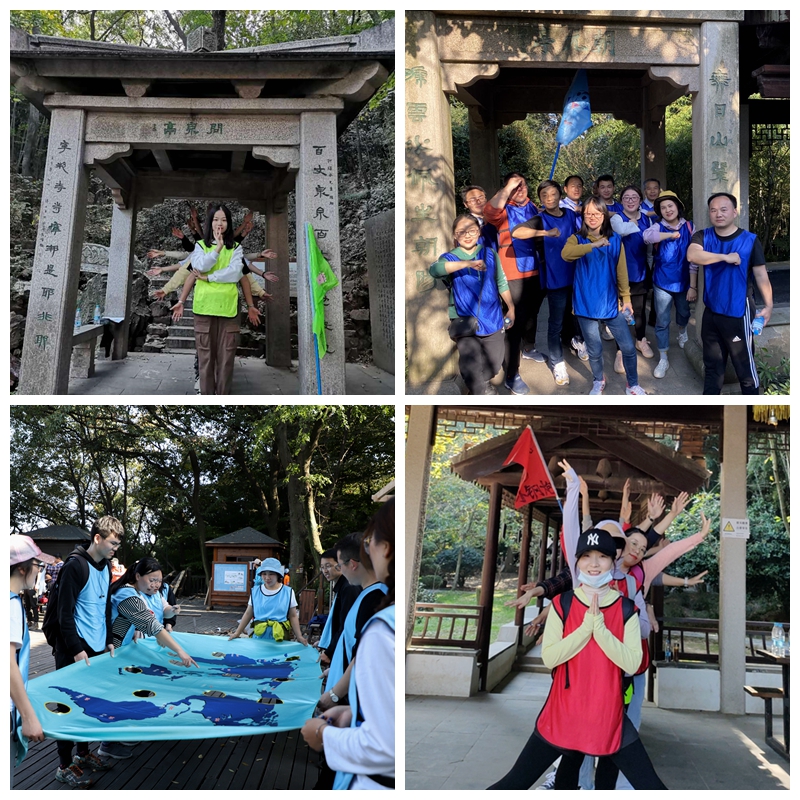 午饭过后,开始了拓展中难度最大也是大家最期待的一个环节——“定向寻宝”,在穹窿山上,分布着各种不同难度的任务点。除了要沿路打卡特色景点,还需要在这些景点拍下不同主题、充满奇思妙想的图片。除此之外,在山上还有一些需要团队协作完成的隐藏挑战任务。各小组从一开始的分工协作完成不同的支线任务,到汇聚在一起完成需要团队协作的主线任务。各组队员在一系列的挑战中感受到了团队精神的重要性,凝聚力更加强大了。