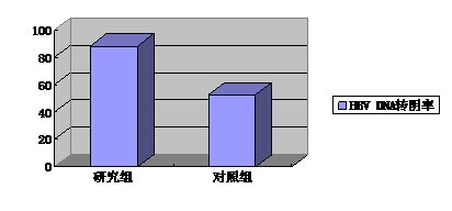 研究组患者 HBV DNA转阴率为88.24%30/34)明显高于对照组的52.94%18/34),差异P<0.05有统计学意义。