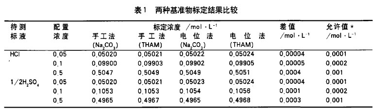 三羟甲基氨基甲烷[77-86-1]替代碳酸钠滴定标定酸浓度研究