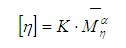 聚合物溶液的特性黏度[η]与聚合物相对分子质量之间的关系,通常用带有两个参数的Mark-Houwink经验方程式来表示: