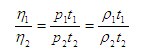 用同一黏度计在相同条件下测定两个液体的黏度时,它们的黏度之比就等于密度与流出时间之比