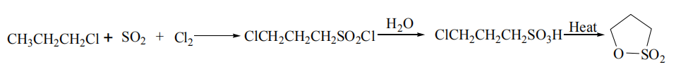 按起始原料不同制备1,3-丙烷磺酸内酯,具有实用价值的合成路线有三条。