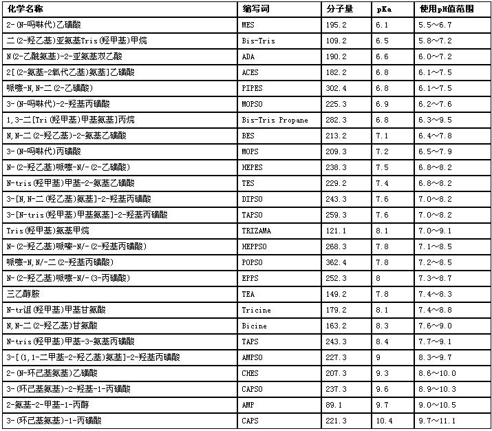 Good’s缓冲液即两性离子缓冲剂,这类缓冲剂一般为氨基磺酸类有机化合物,配成溶液后,pH值比较稳定,与多种酶和化学试剂不发生反应,主要应用于生物学和医学。