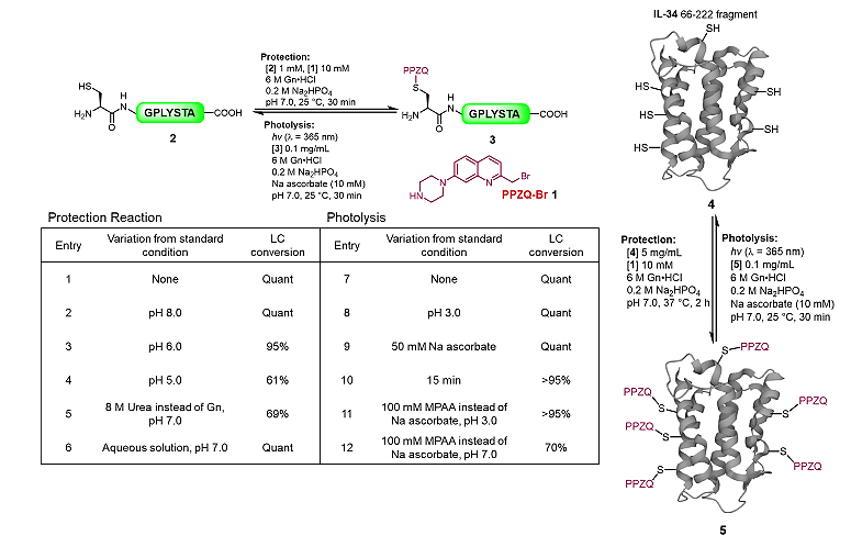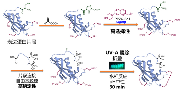 图1. 通过PPZQ正交保护对蛋白质进行半合成