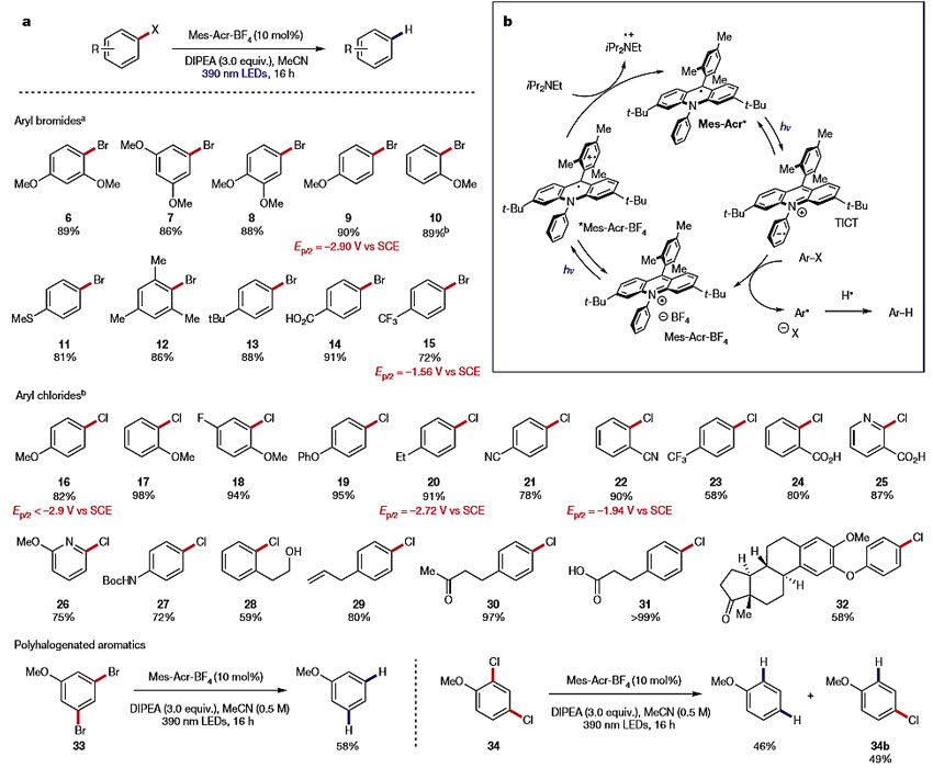 图2. 芳基卤代物的还原脱卤及其机理。图片来源:Nature