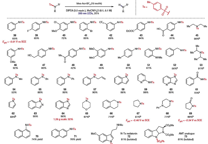 图3. Mes-Acr•催化的脱Ts反应。图片来源:Nature