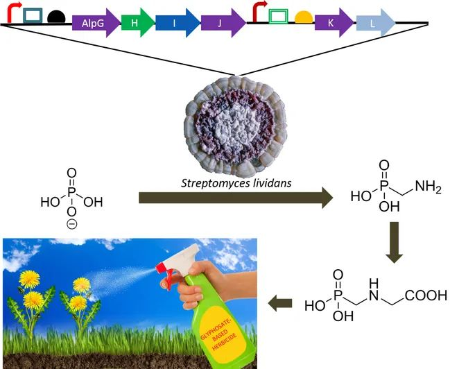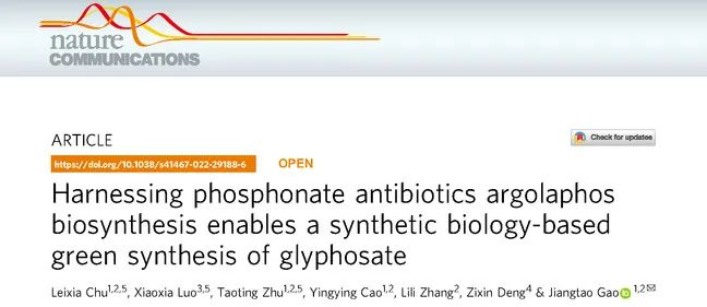 草甘膦是一种广泛使用的除草剂,全球年产量超过一百万吨。目前草甘膦的商业化生产过程涉及到诸多有毒的化合物、试剂和废物。近期,许多国家尤其我国,加强了对草甘膦生产的环境监管和执法,造成该农药的价格持续上升。因此,我们迫切需要研发一种草甘膦的绿色合成途径。近期福建农林大学生命科学学院高江涛课题组在Nature Communications在线发表了题为“Harnessing phosphonate antibiotics argolaphos biosynthesis enables a synthetic biology-based green synthesis of glyphosate”的研究论文,利用合成生物学策略成功实现农药草甘膦的绿色合成。