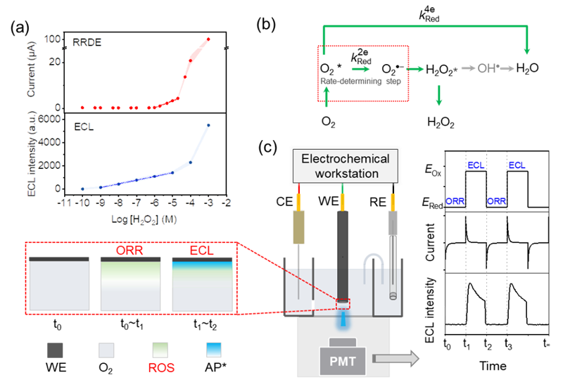 图1. 用于ORR动力学评估的ECL原理和装置示意图