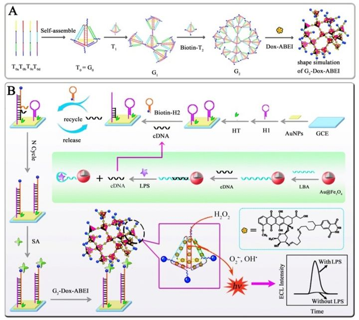 Dox-ABEI电致化学发光指示剂和自组装树枝状DNA四面体纳米载体用于脂多糖超灵敏检测