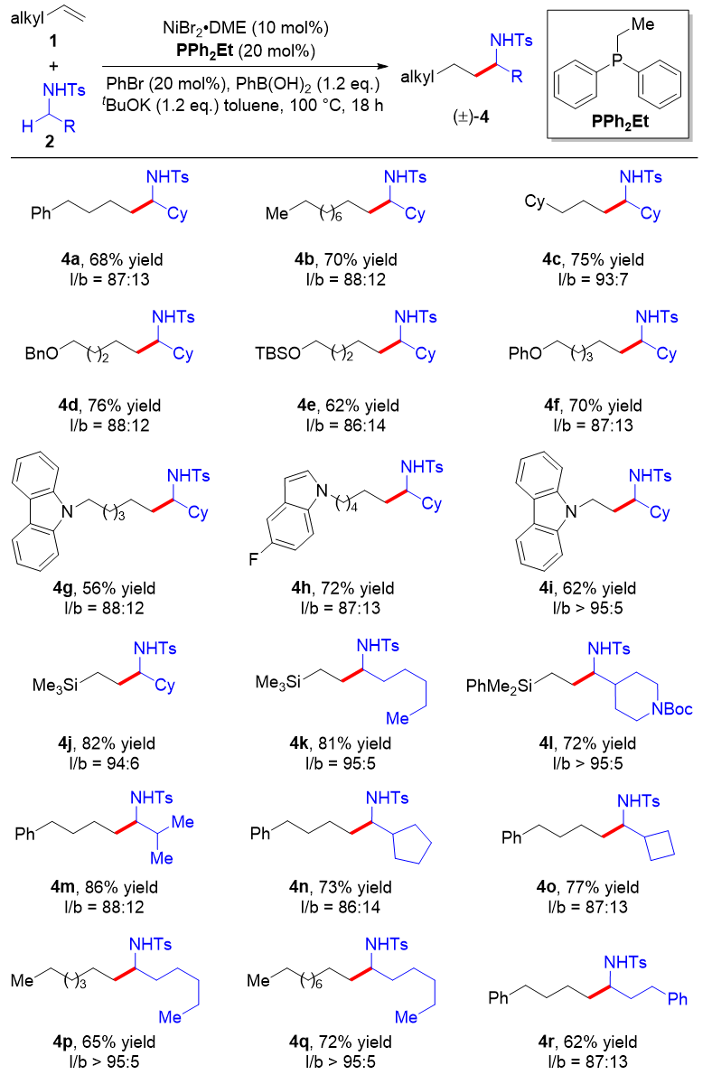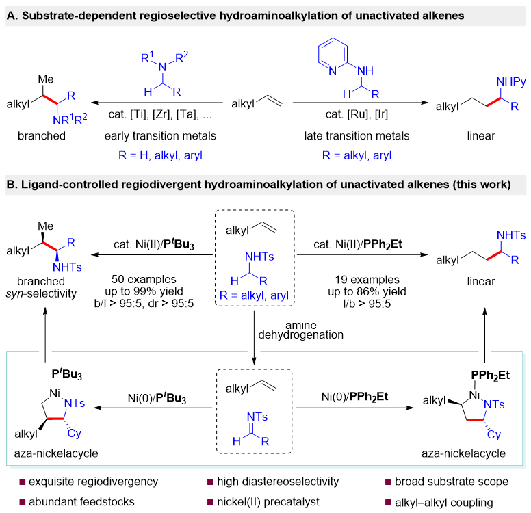 配体调控镍催化非活化烯烃的区域发散性氢胺烷基化反应