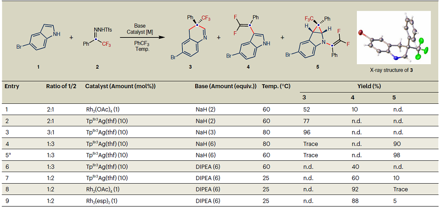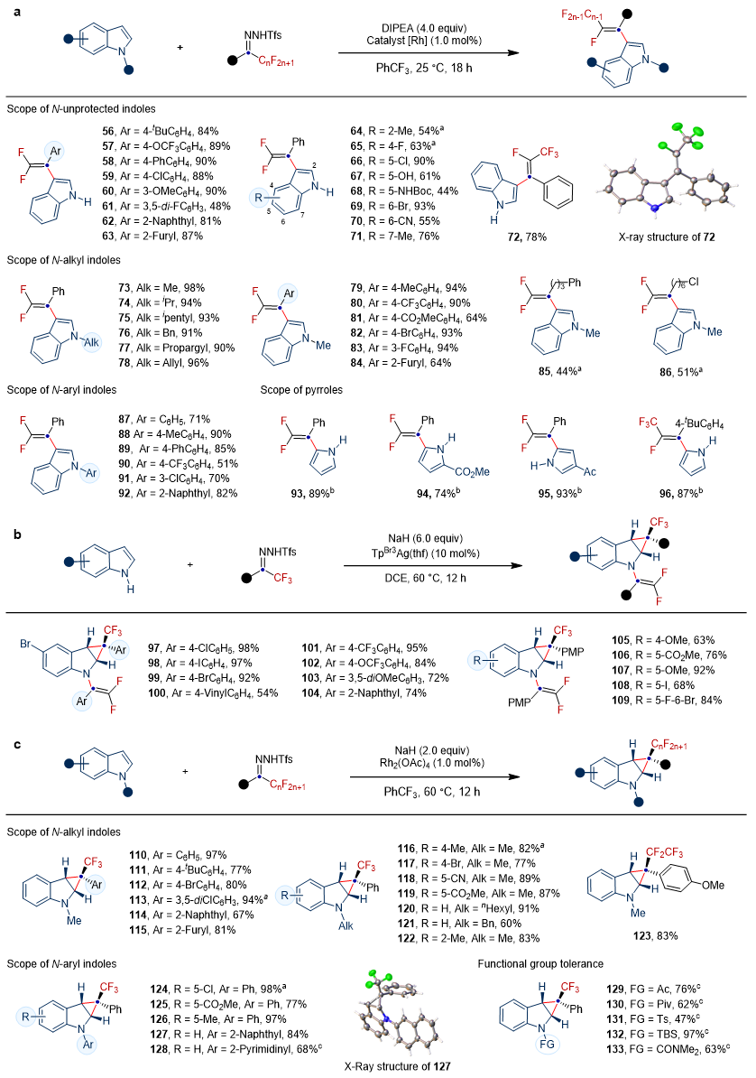 图2. 氟烷基卡宾对吲哚骨架碳插入反应研究。图片来源:Nat. Chem.